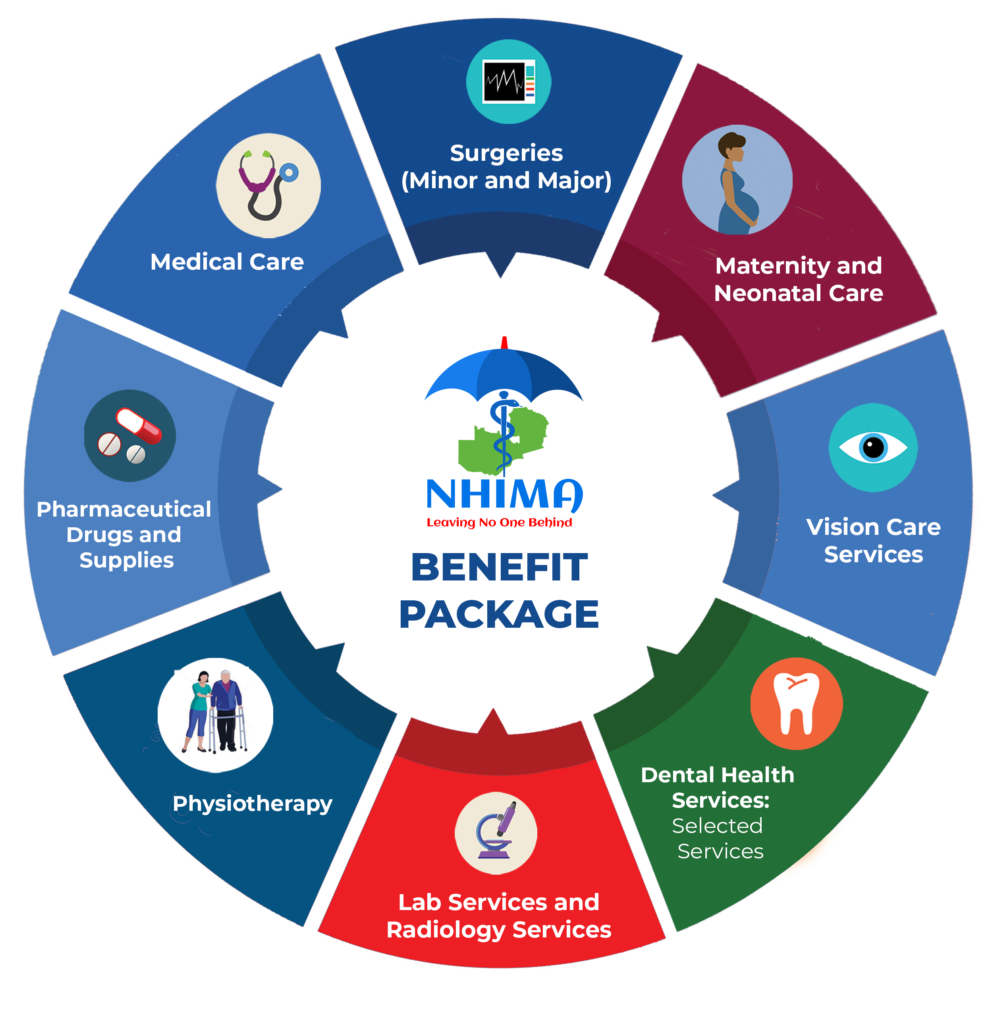 The NHIMA Benefit Package is a list of medical services and procedures that the National Health Insurance Management Authority offers to its esteemed beneficiaries of the scheme. The scheme is a family cover but the benefits are per insured individual